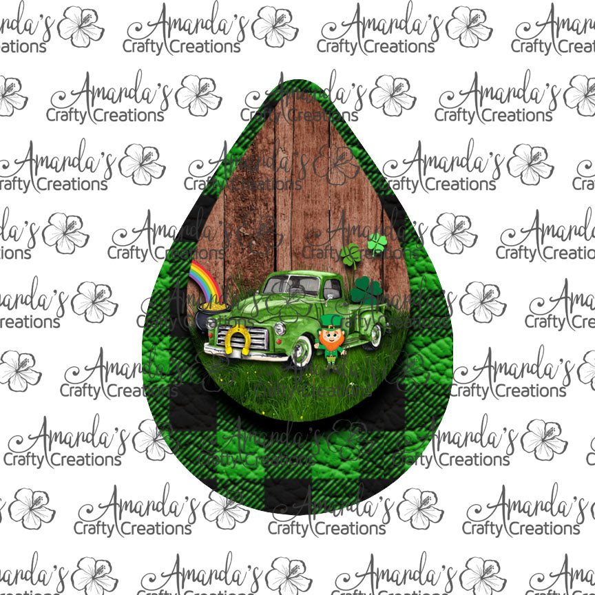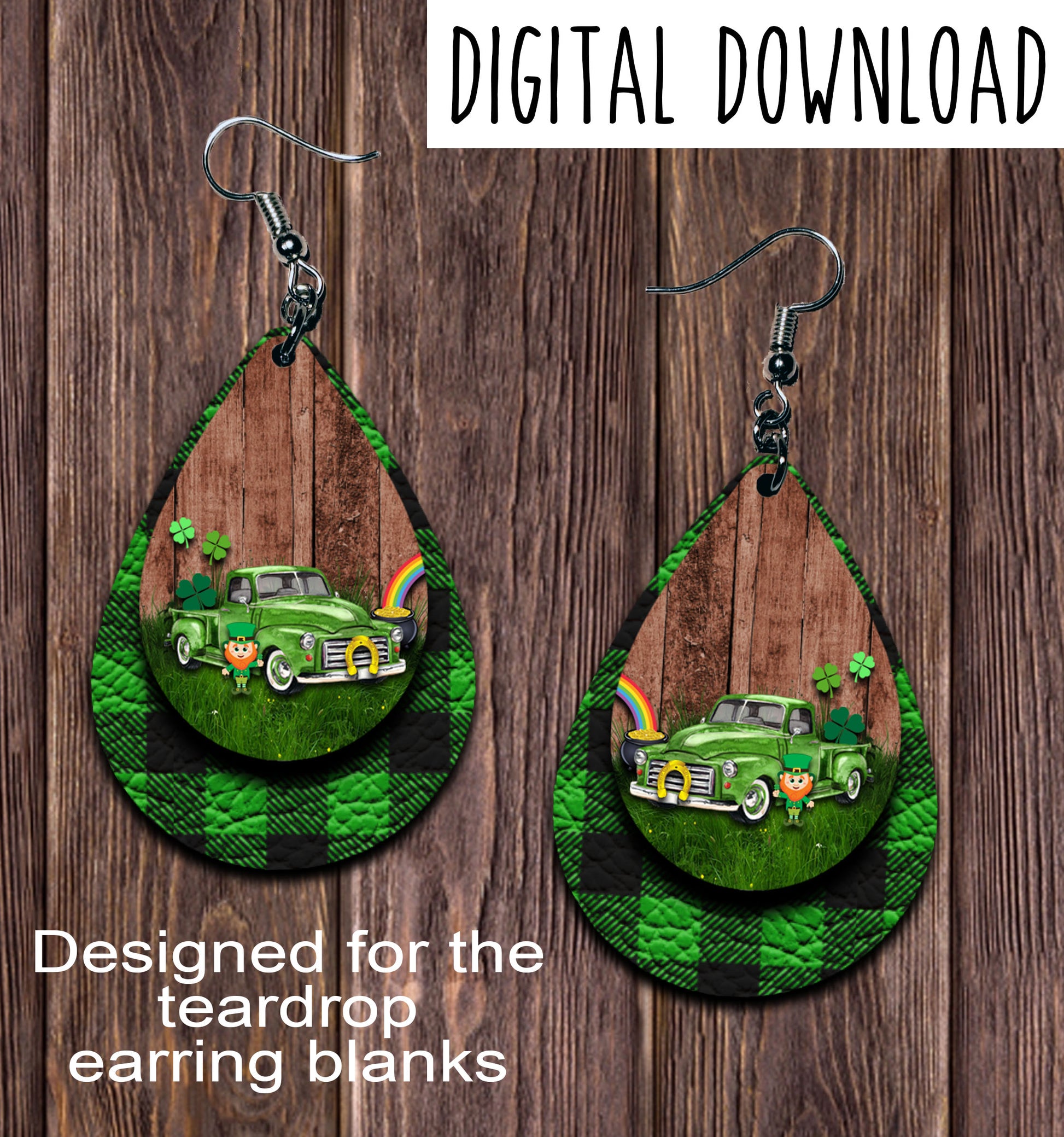 Vintage Green Truck St Patricks Day Green Plaid Teardrop Earring Sublimation Design, Hand drawn Teardrop Sublimation earring design, digital download, JPG, PNG