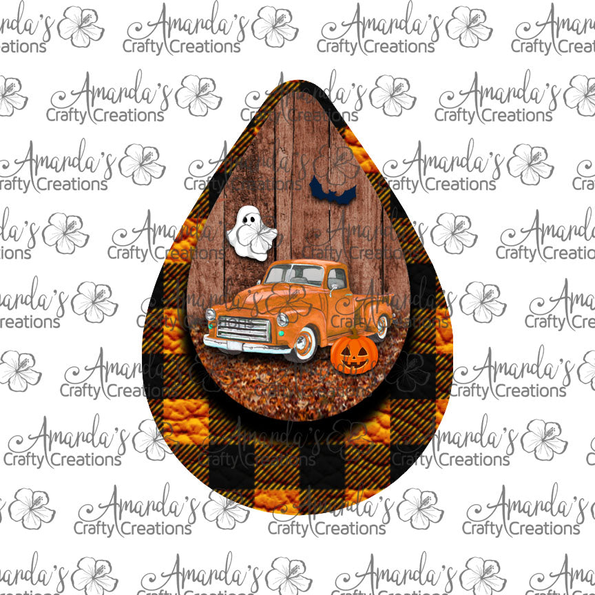 Vintage Orange Truck Halloween Orange Plaid Teardrop Earring Sublimation Design, Hand drawn Teardrop Sublimation earring design, digital download, JPG, PNG
