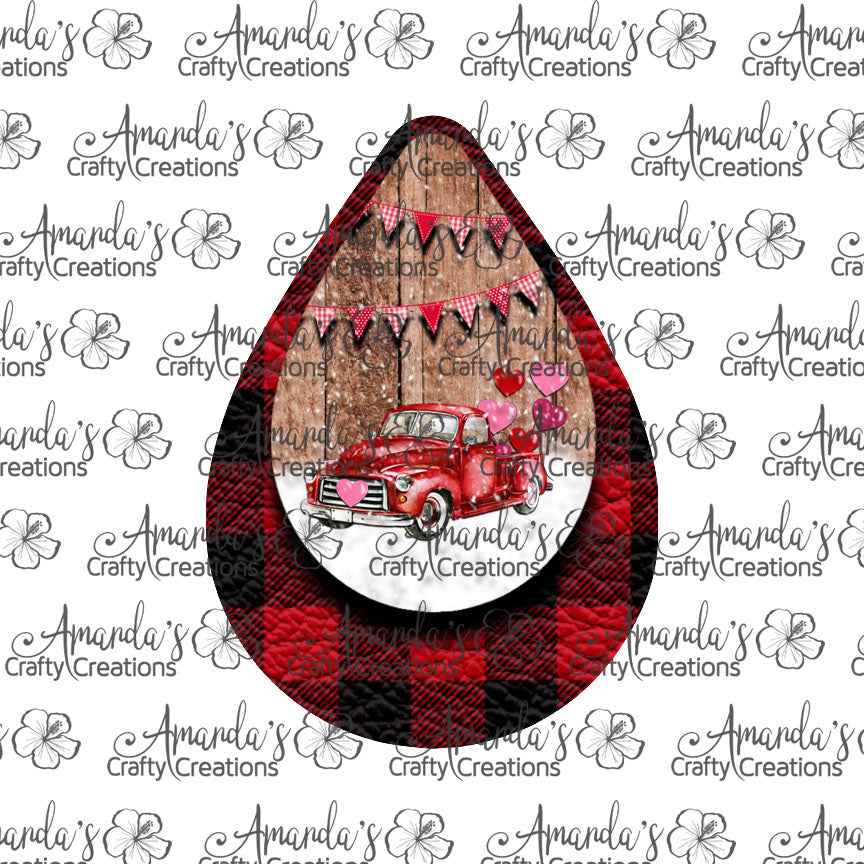 Vintage Red Truck Red Buffalo Plaid Valentine Teardrop Earring Sublimation Design, Hand drawn Teardrop Sublimation earring design, digital download, JPG, PNG