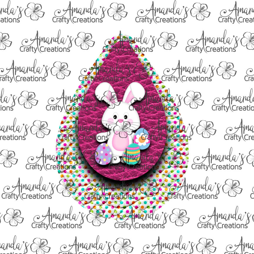 White Bunny Basket Hot Pink Polka Dots Teardrop Earring Sublimation Design, Hand drawn Teardrop Sublimation earring design, digital download, JPG, PNG