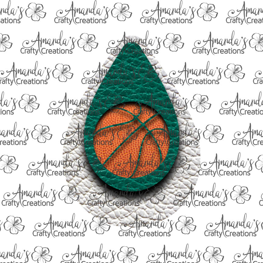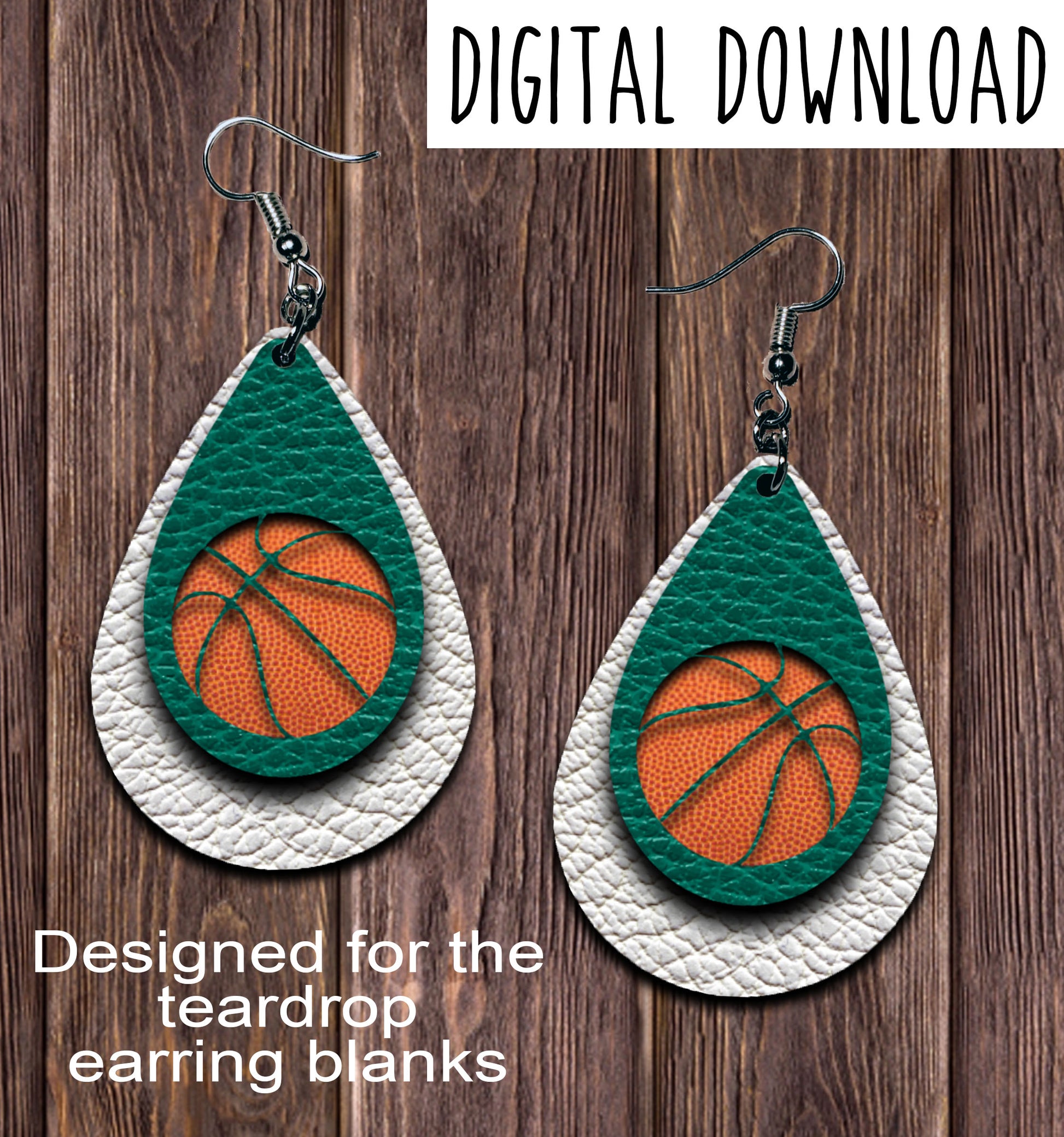 White Kelly Green Basketball Cut Out Teardrop Earring Sublimation Design, Hand drawn Teardrop Sublimation earring design, digital download, JPG, PNG