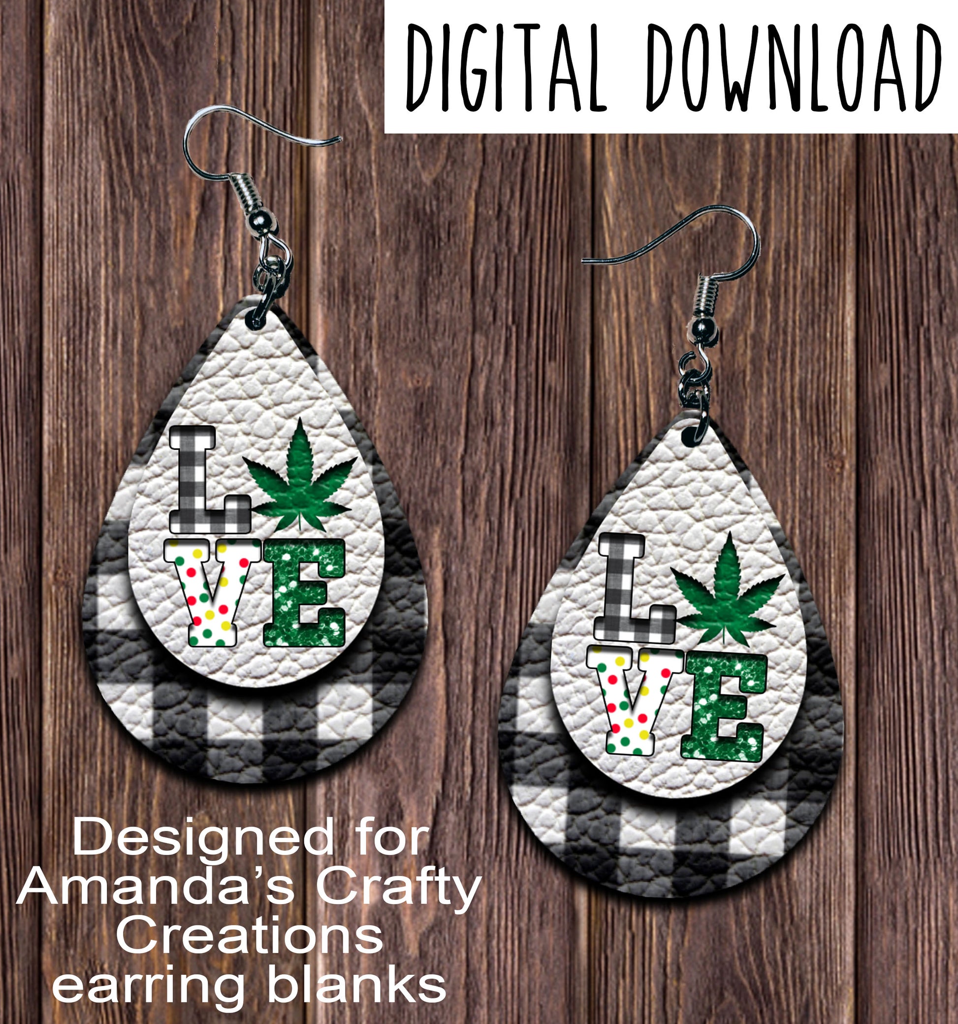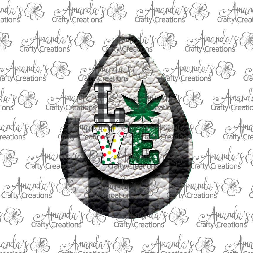 White Plaid LOVE Marijuana Cut Out Teardrop Earring Sublimation Design, Hand drawn Teardrop Sublimation earring design, digital download, JPG, PNG