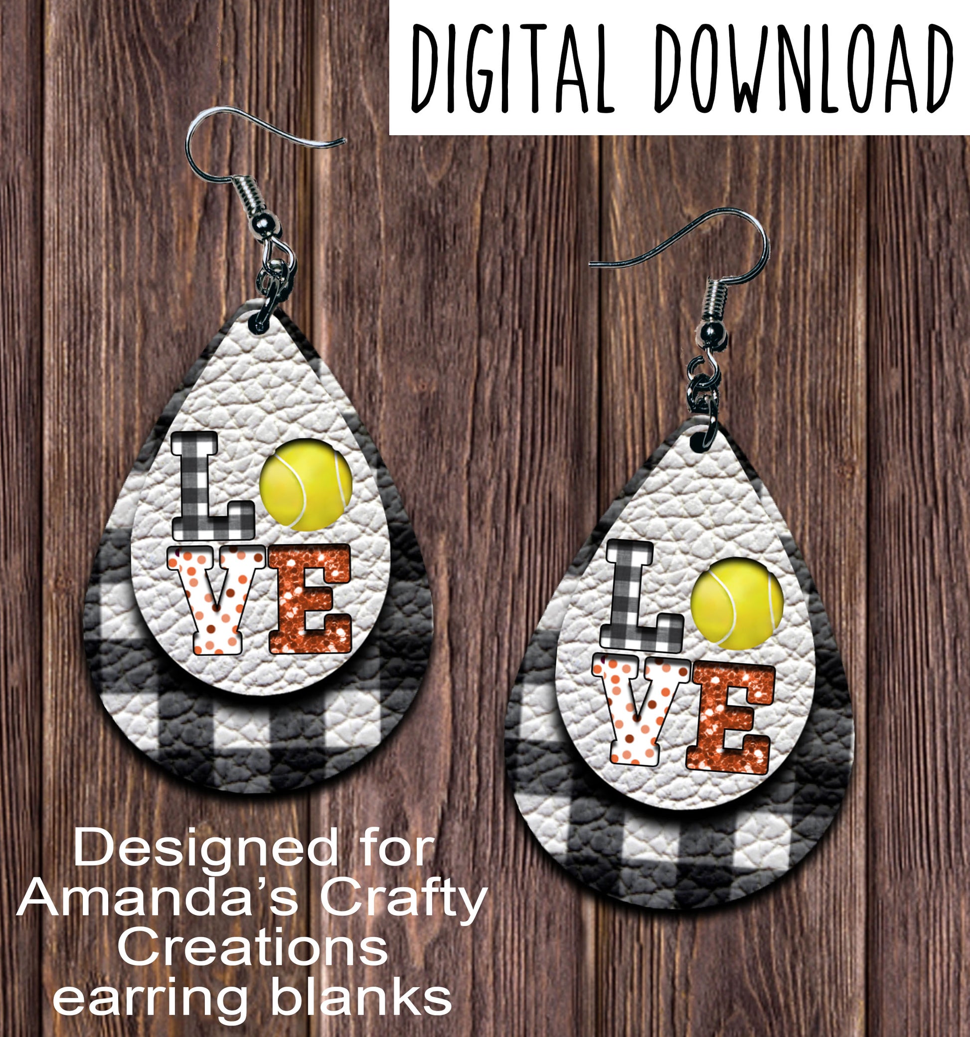 White Plaid LOVE Orange Tennis l Cut Out Teardrop Earring Sublimation Design, Hand drawn Teardrop Sublimation earring design, digital download, JPG, PNG