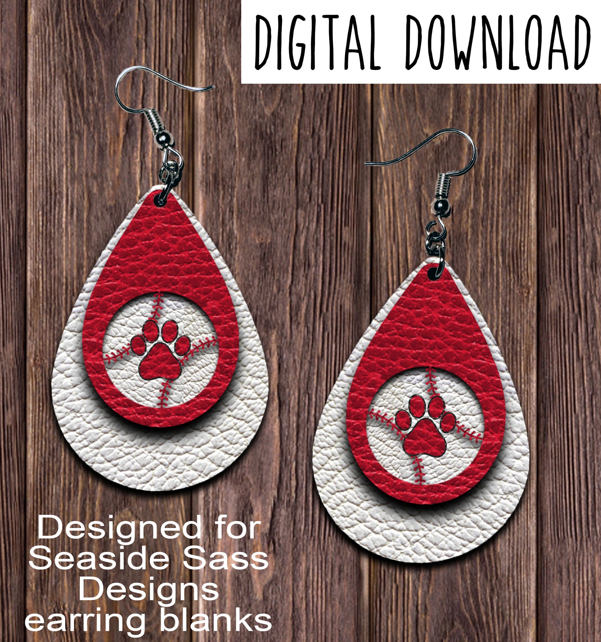 White Red Paw Baseball Cut Out Teardrop Earring Sublimation Design, Hand drawn Teardrop Sublimation earring design, digital download, JPG, PNG