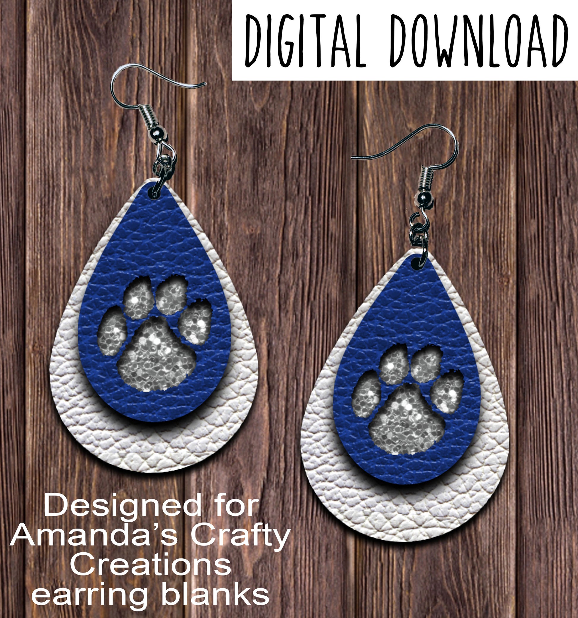 White Royal Blue Paw Cut Out Teardrop Earring Sublimation Design, Hand drawn Teardrop Sublimation earring design, digital download, JPG, PNG