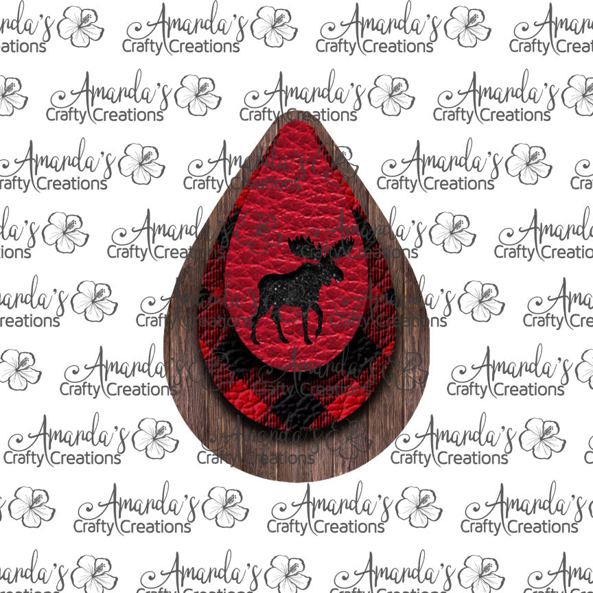 Wood Buffalo Plaid Moose Cut Out Teardrop Earring Sublimation Design, Hand drawn Teardrop Sublimation earring design, digital download, JPG, PNG