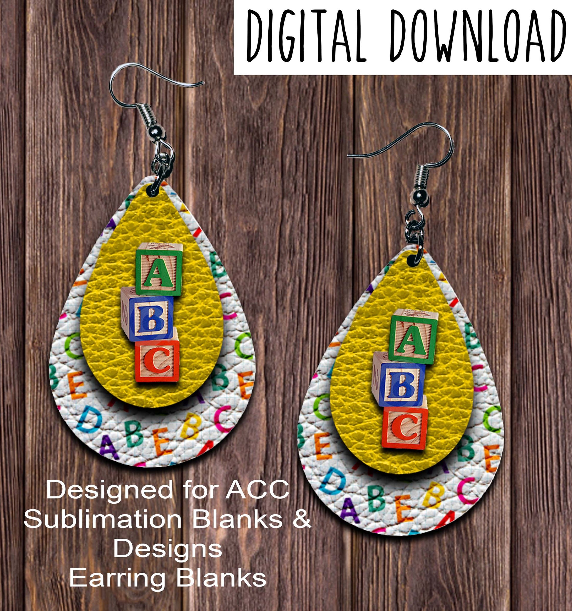Yellow Blocks ABC Teardrop Earring Sublimation Design, Hand drawn Teardrop Sublimation earring design, digital download, JPG, PNG
