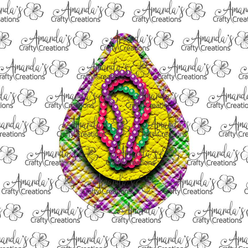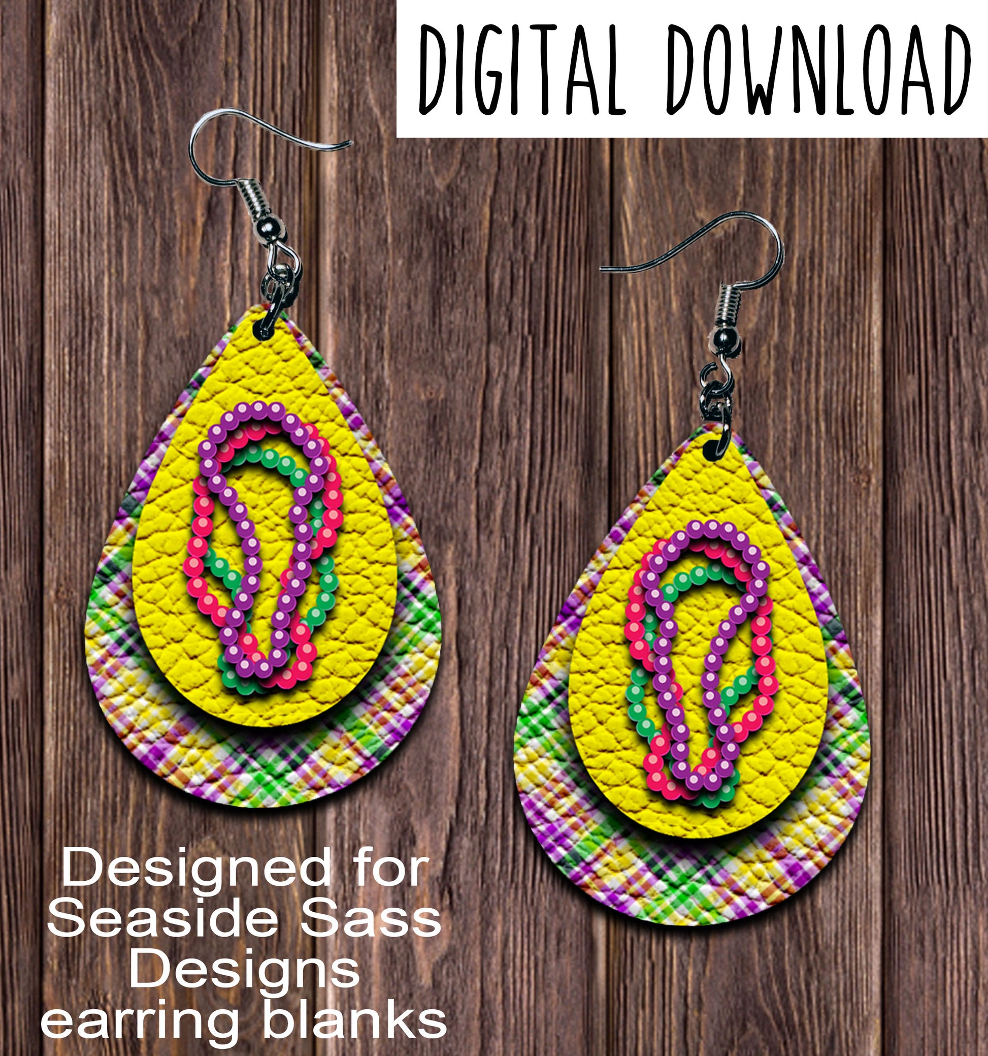 Yellow Mardi Gras Beads Crosshatch Teardrop Earring Sublimation Design, Hand drawn Teardrop Sublimation earring design, digital download, JPG, PNG